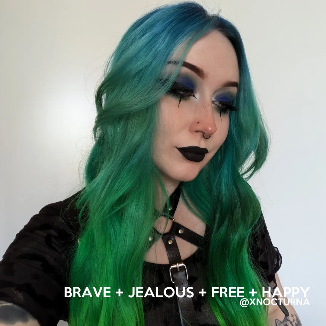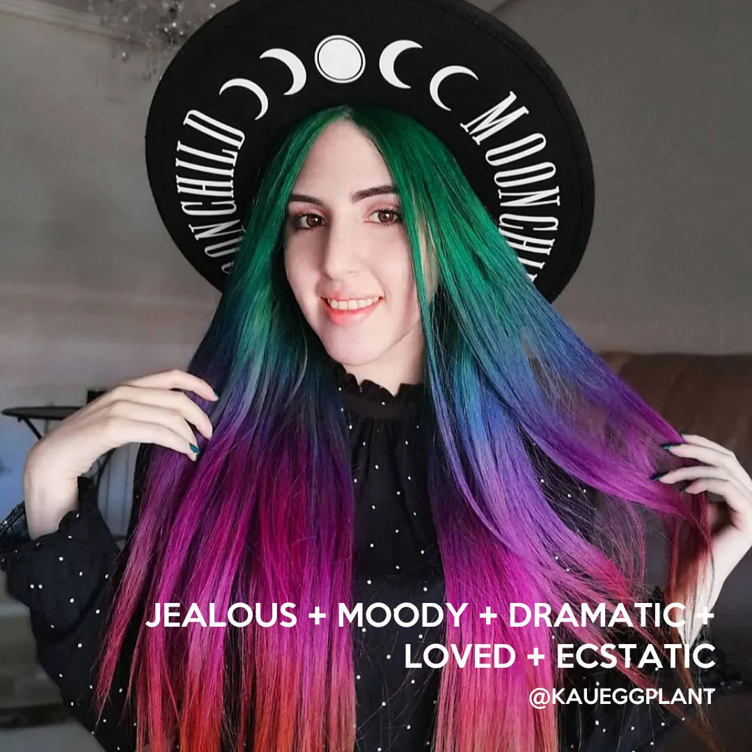 For unbleached hair, we recommend our most pigmented colours like Moody blue, Proud pink, Vampy red, Jealous green, Dramatic purple, and Mystic turquoise. The outcome always depends on your hair health and colour. The darker and healthier your hair, the less bright the colour will be.