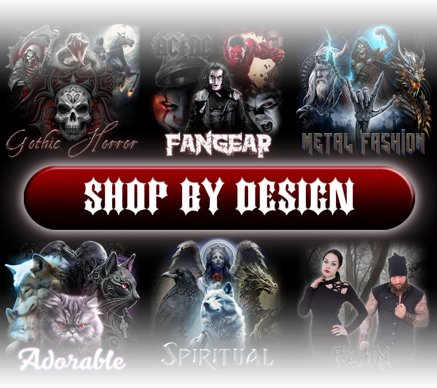 Our artwork designs include heavy metal reapers and skeletons, gothic angels and spirits and fantasy figures such as dragons, fairies, vampires and werewolves. Spiral Direct’s range of men’s alternative clothing includes t-shirts, hoods, long-sleeved t-shirts and jackets. We also have an ever-growing women’s gothic fashion range, which now includes plain and printed dresses, skirts, fitted tops, camisoles and corsets.