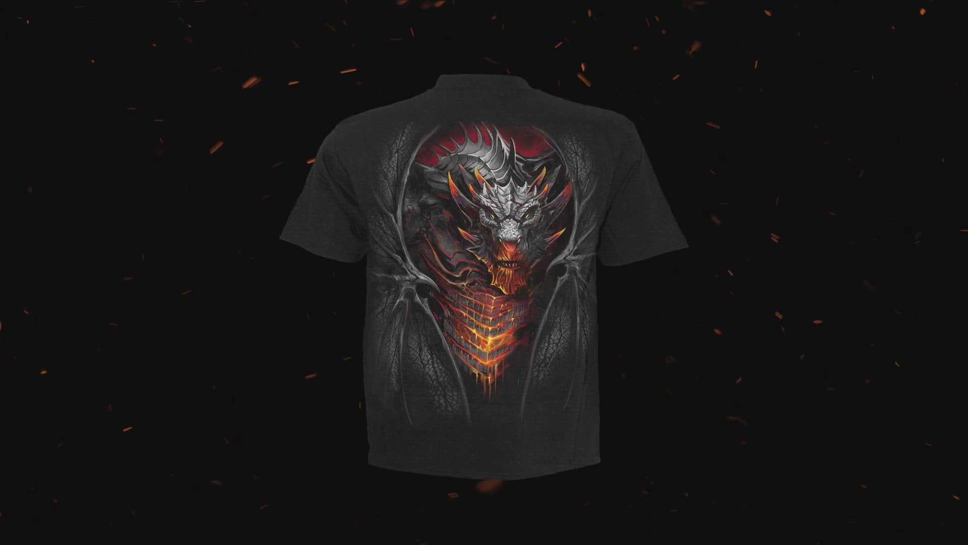 Wings of charred sulphur envelope the suffocating heat burning from within this dragon’s belly. Molten lava seeps from every crack along her body, dripping to the ground where furious flames whip and lick at her feet. Kids T-Shirt Black is made of Top Quality 100% Cotton, Jersey using skin friendly, Azo-free, Reactive dyes.